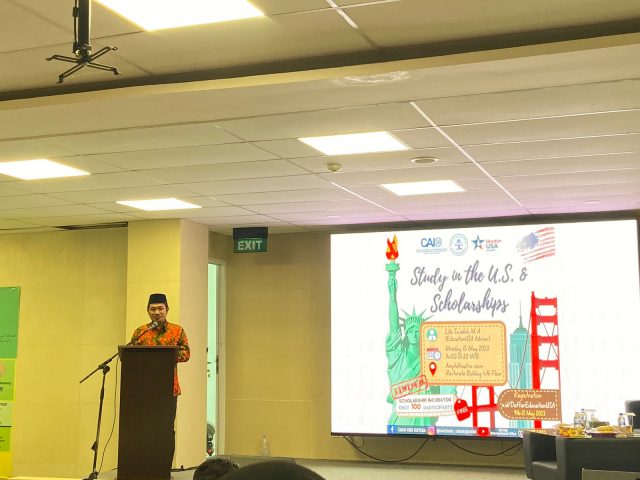 (Jambi, 15/5) Bertempat di ruang Amphitheatre, Pusat Admisi dan Layanan Internasional (CAIO) bekerjasama dengan EducationUSA mengadakan seminar dan sosialisasi menembus beasiswa ke Amerika Serikat. Kegiatan ini dihadiri langsung oleh Ibu Lilis Su’adah, MA, EducationUSA advisor, Wakil Rektor III, Dekan Fusa, dan Wakil Dekan 1 Fakultas Adab.